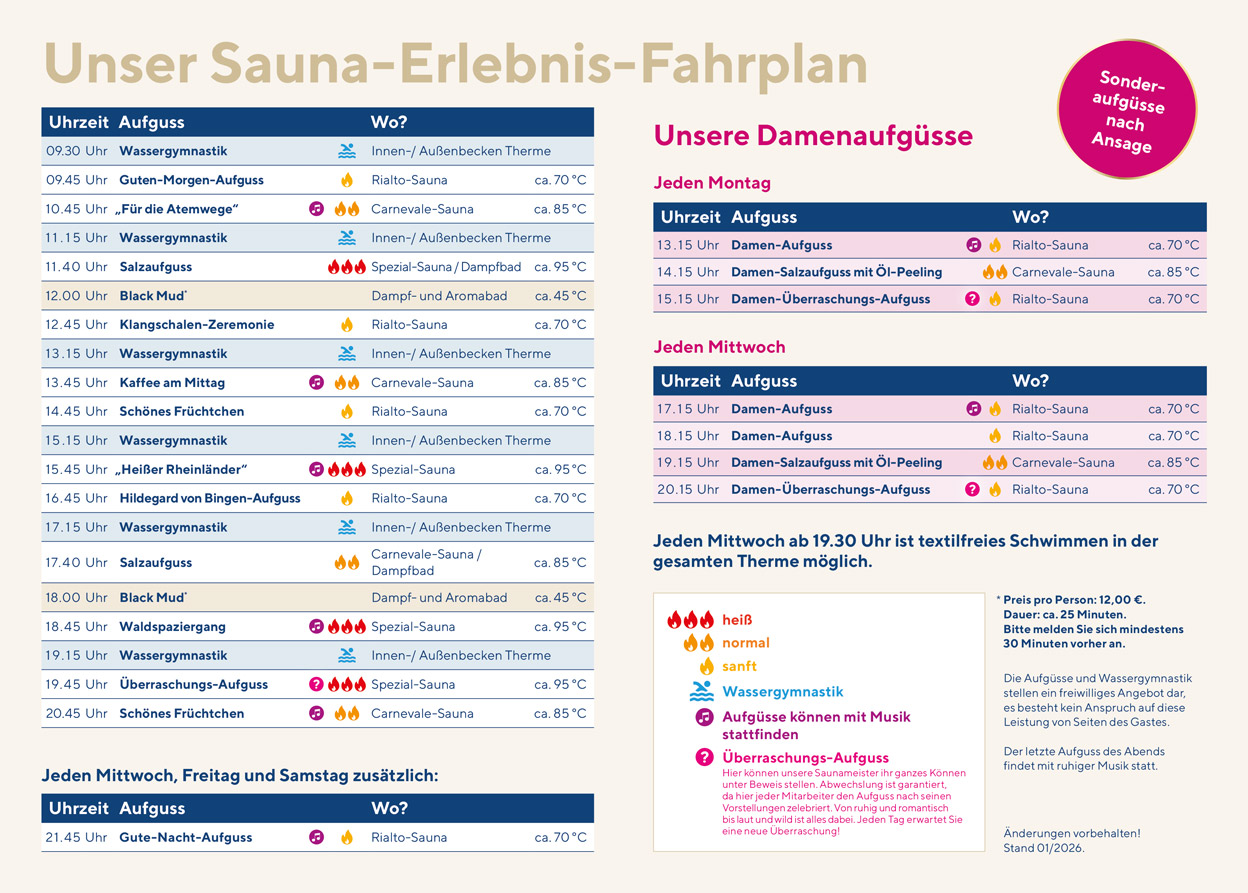 Home Öffnungszeiten Kontakt Download Sauna Erlebnis-Fahrplan Einfach Ihren Wunsch-Aufguss wählen Download Sauna-Erlebnis-Fahrplan