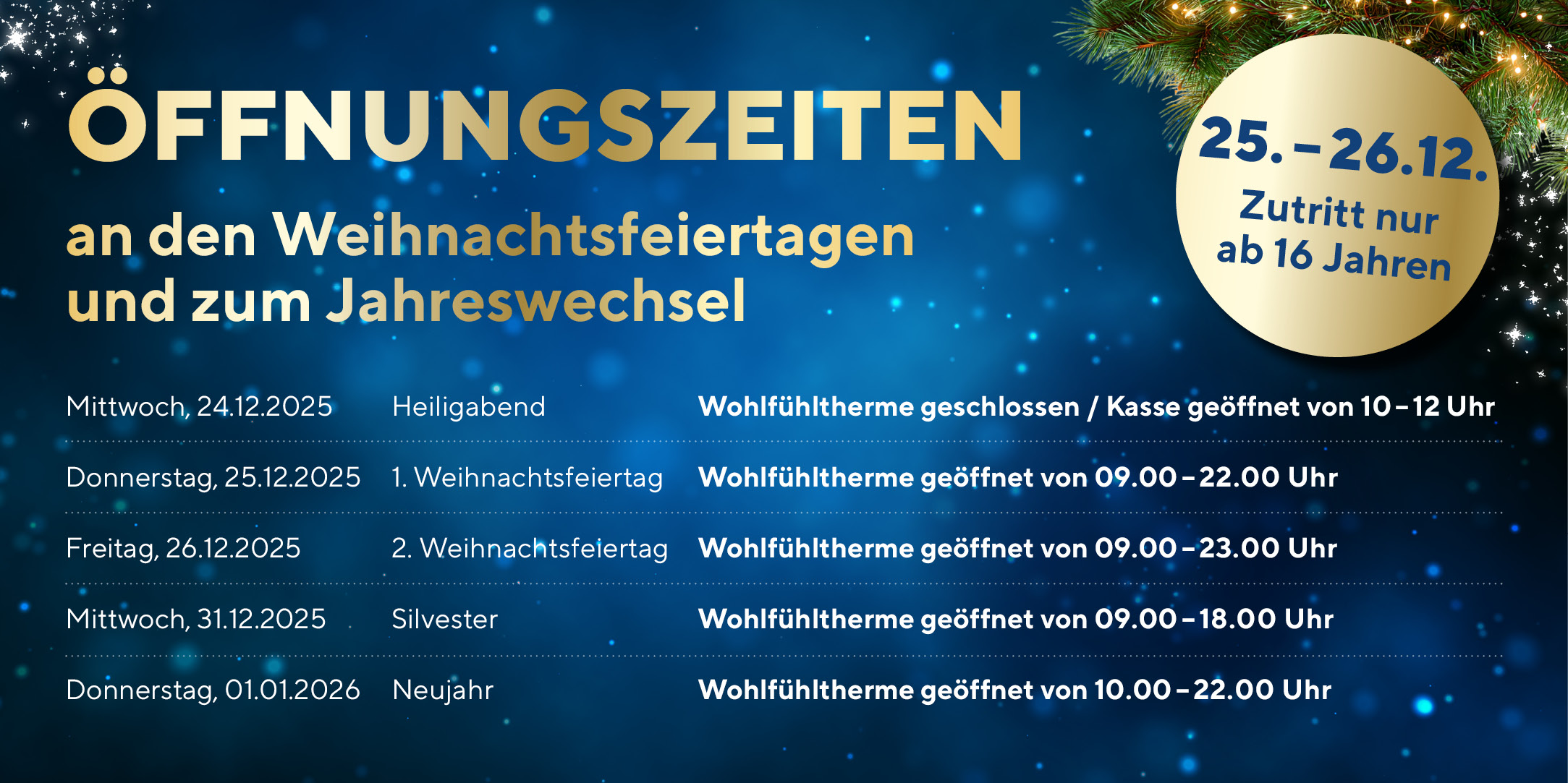 | Neujahr | ab 10.00 Uhr geöffnet |